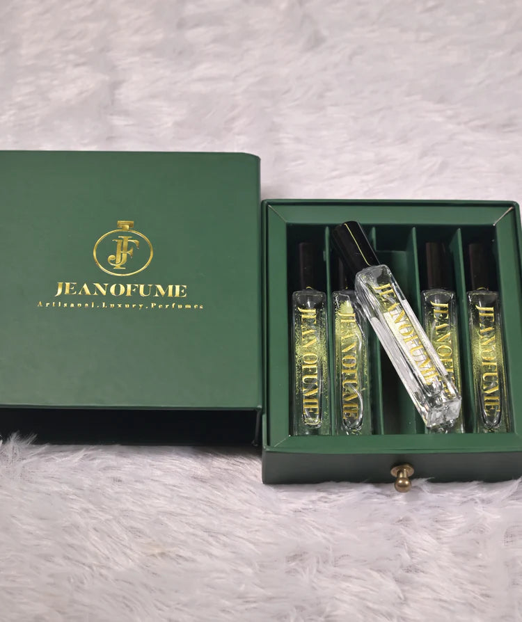 Luxurious sets of 5 perfumes (10 ml each), with customisable metal stickers on bottles and packaging—ideal for branding your gesture, your way. Or make it a set of 7 perfumes for 7 days.